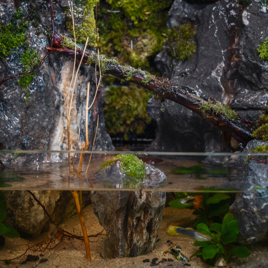 Don't be fooled - we do Ecosystem terrariums and paludarium builds as well! Do you have dart frogs or a cool lizard that you want a decked out enclosure for? Well, we can make the bioactive rainforest slice of life you've always wanted! These can house live plants, insects, exotic livestock, rain and fog waterfalls and more!